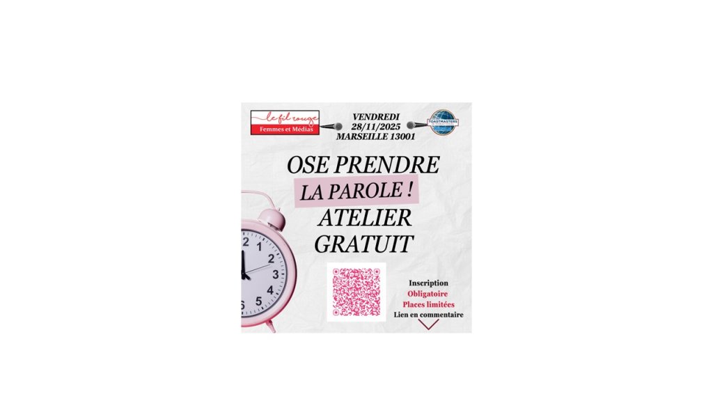 Sabrina MOKHTAR, Présidente des Toastmasters International Marseille et Christine GINEL, Présidente-Fondatrice du Fil Rouge Femmes et Médias ont le plaisir de vous inviter à un atelier inspirant :